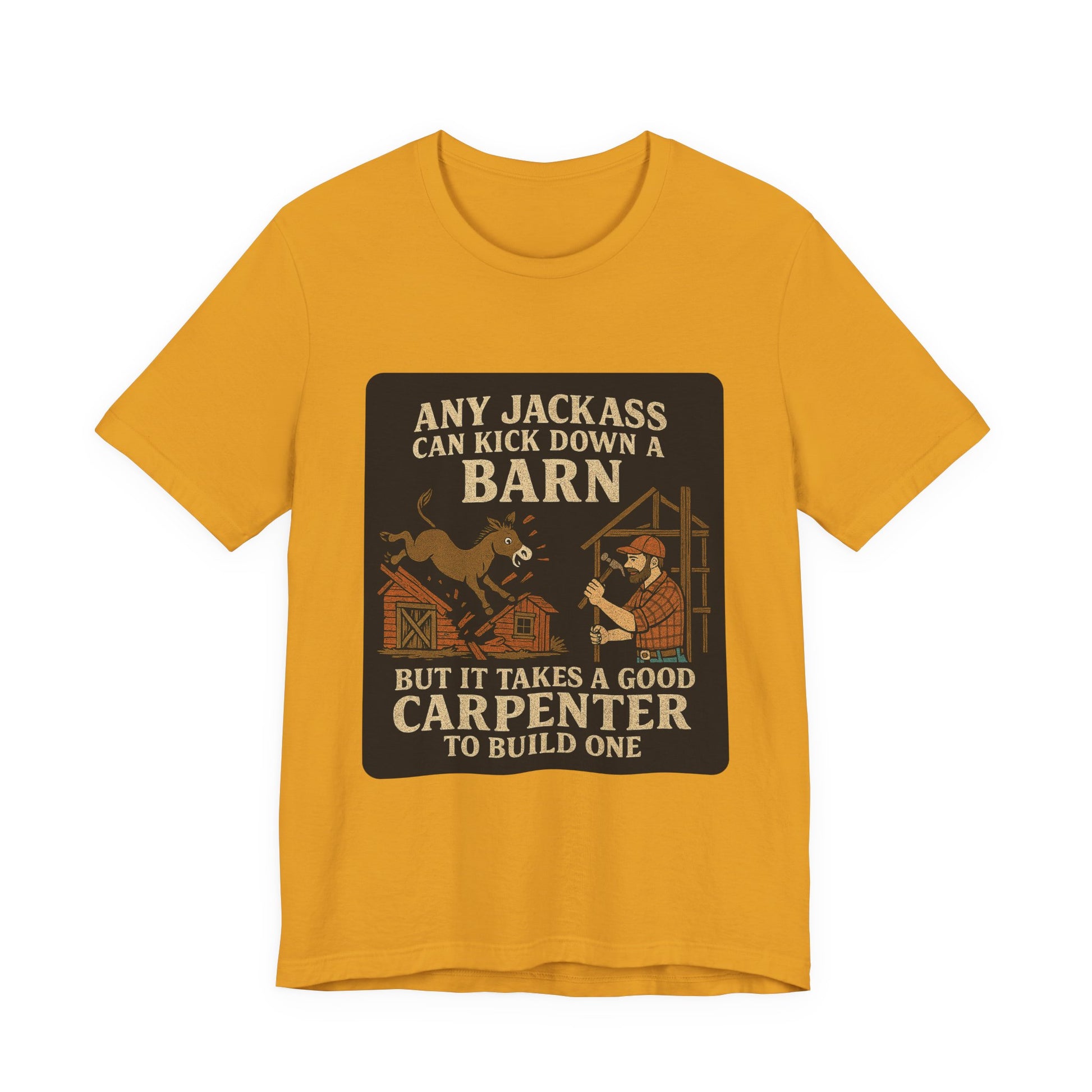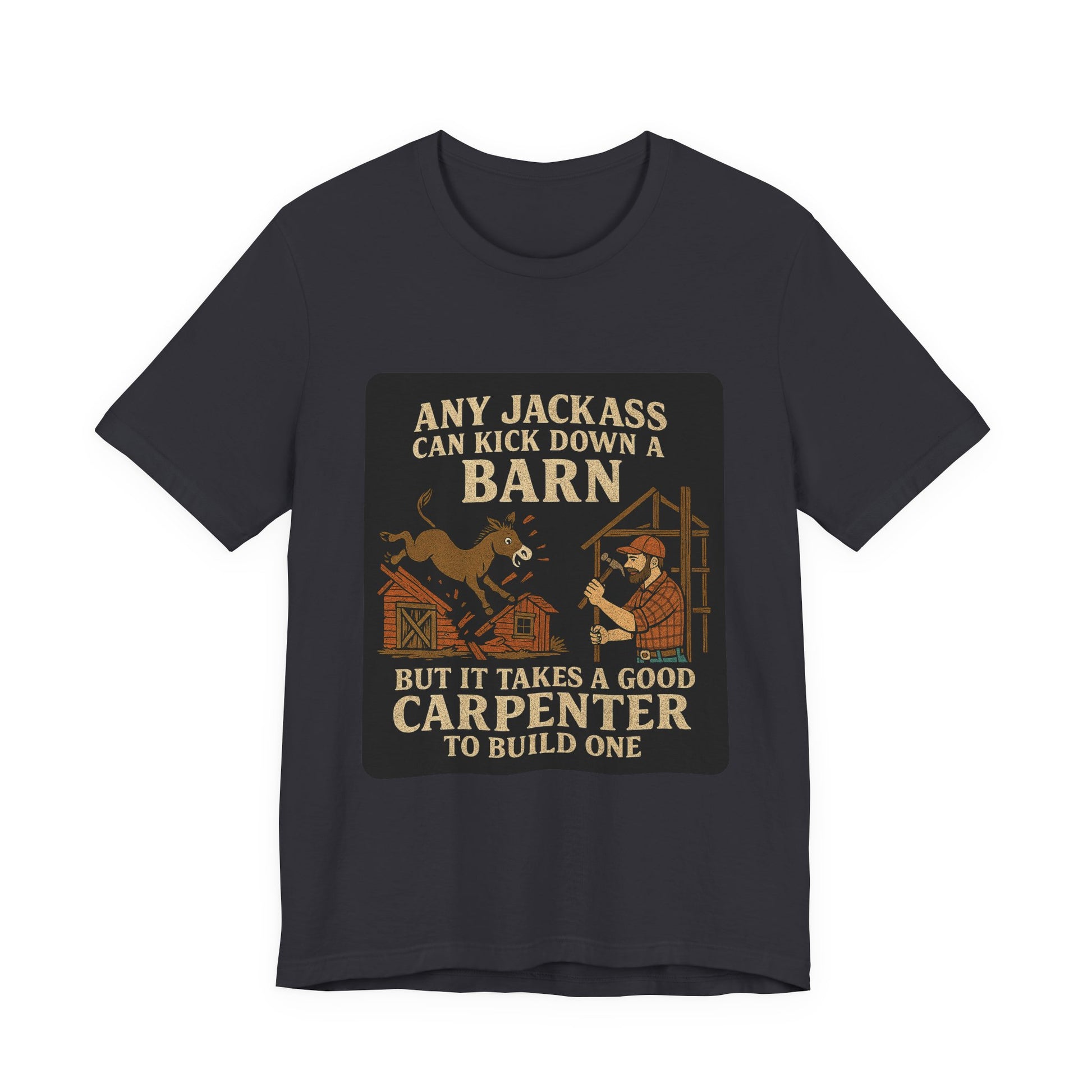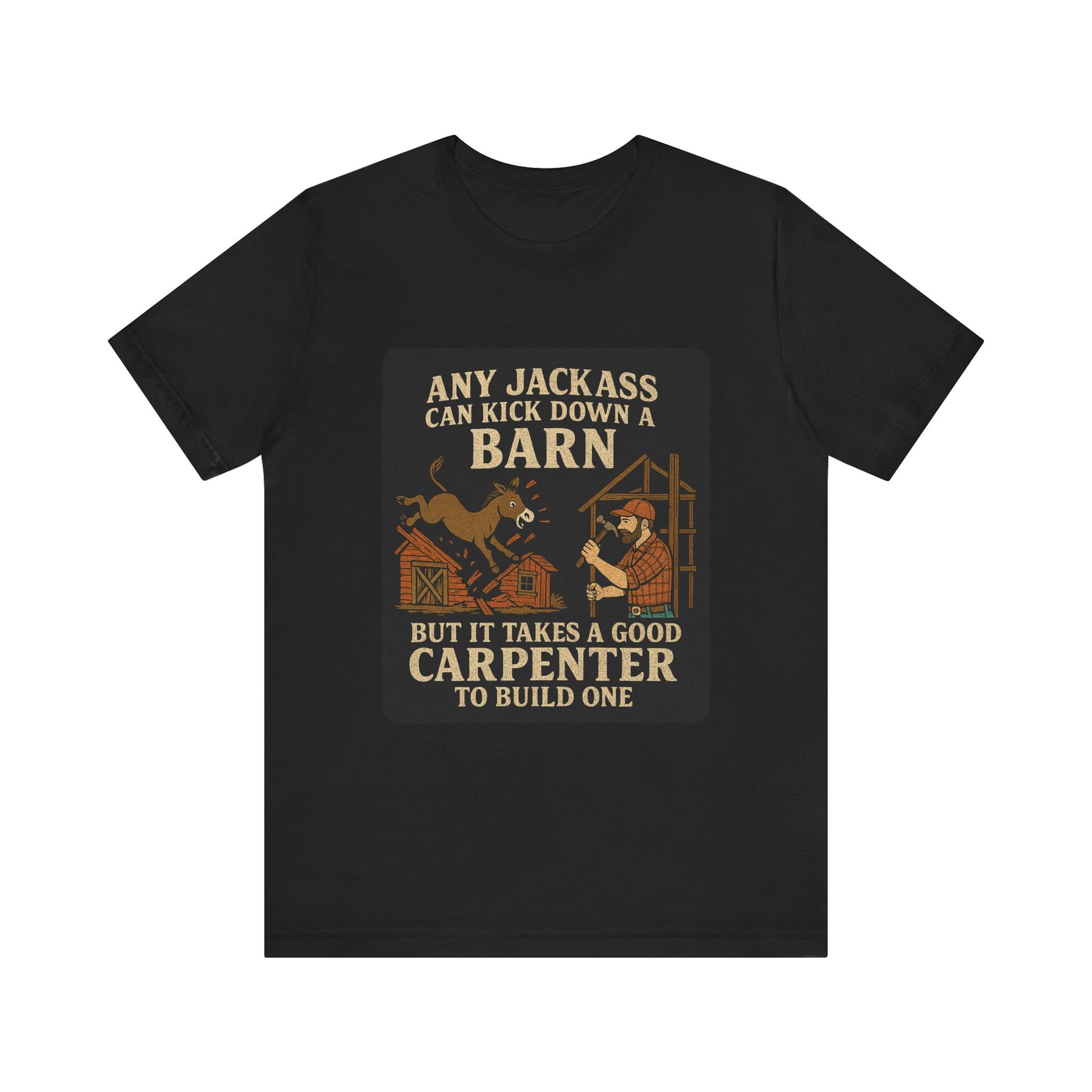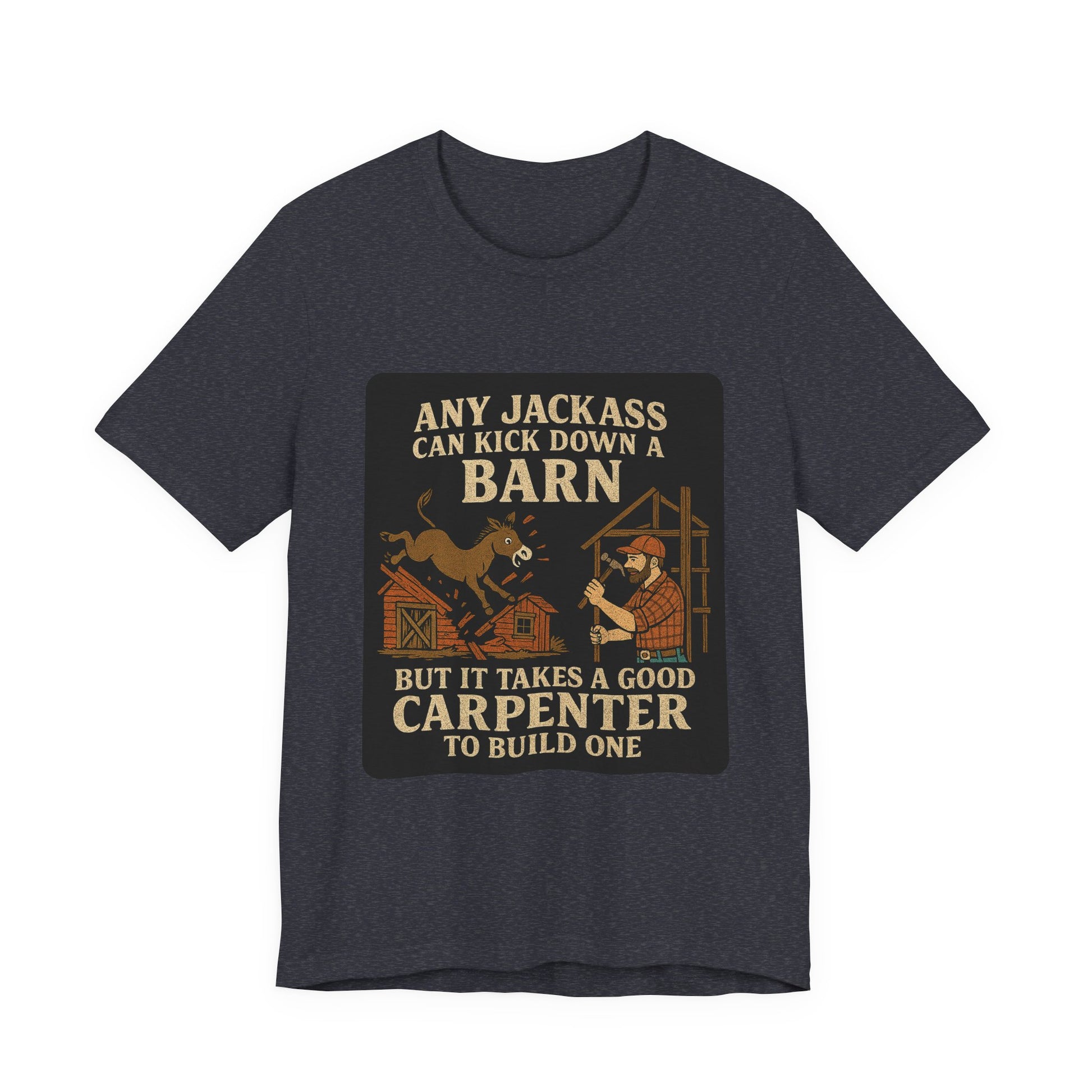 Carpenter Humor Tee - Any Jackass Can Kick Down a Barn, Funny Gift for Builders, Unisex T-Shirt, Great for Birthdays, Housewarming, [...]