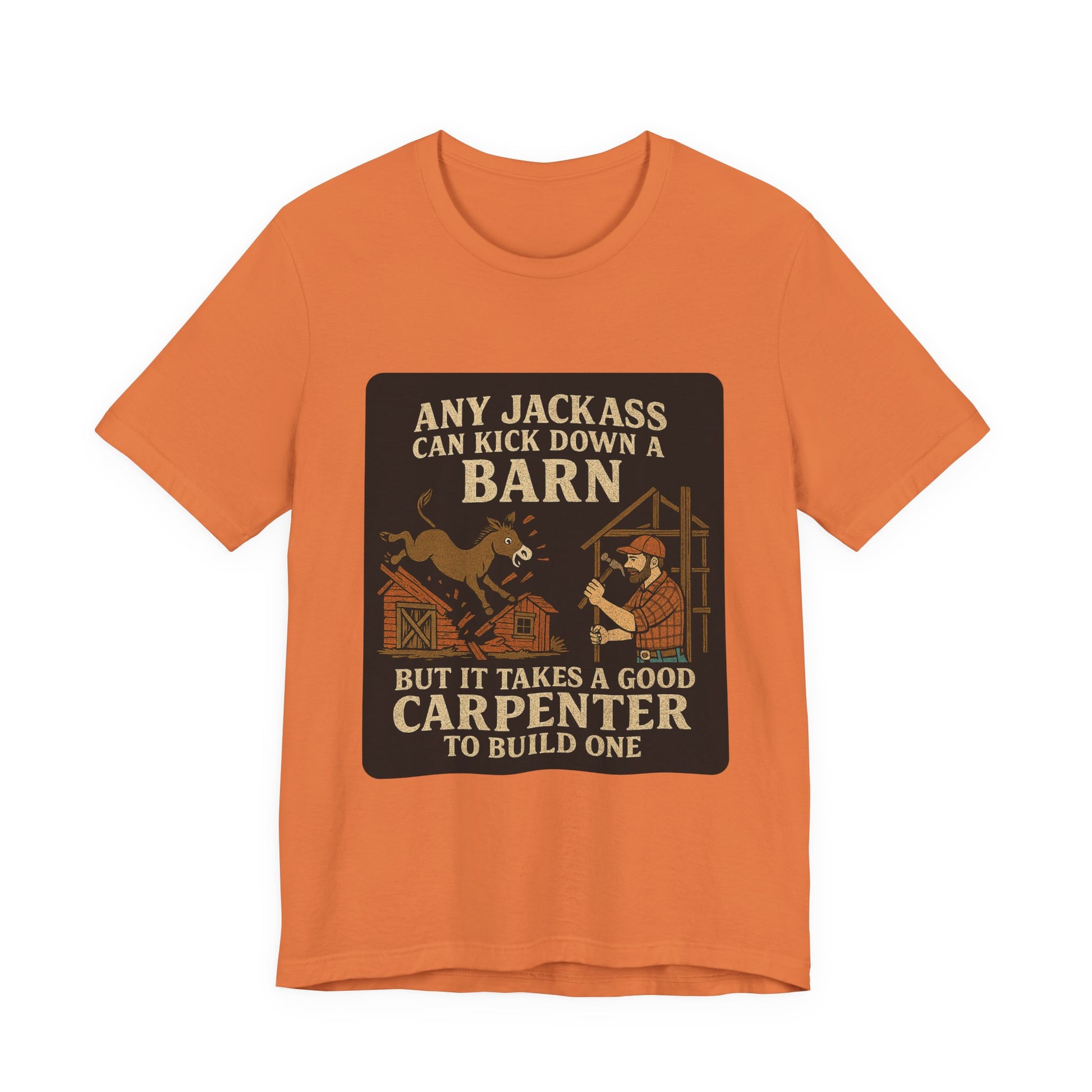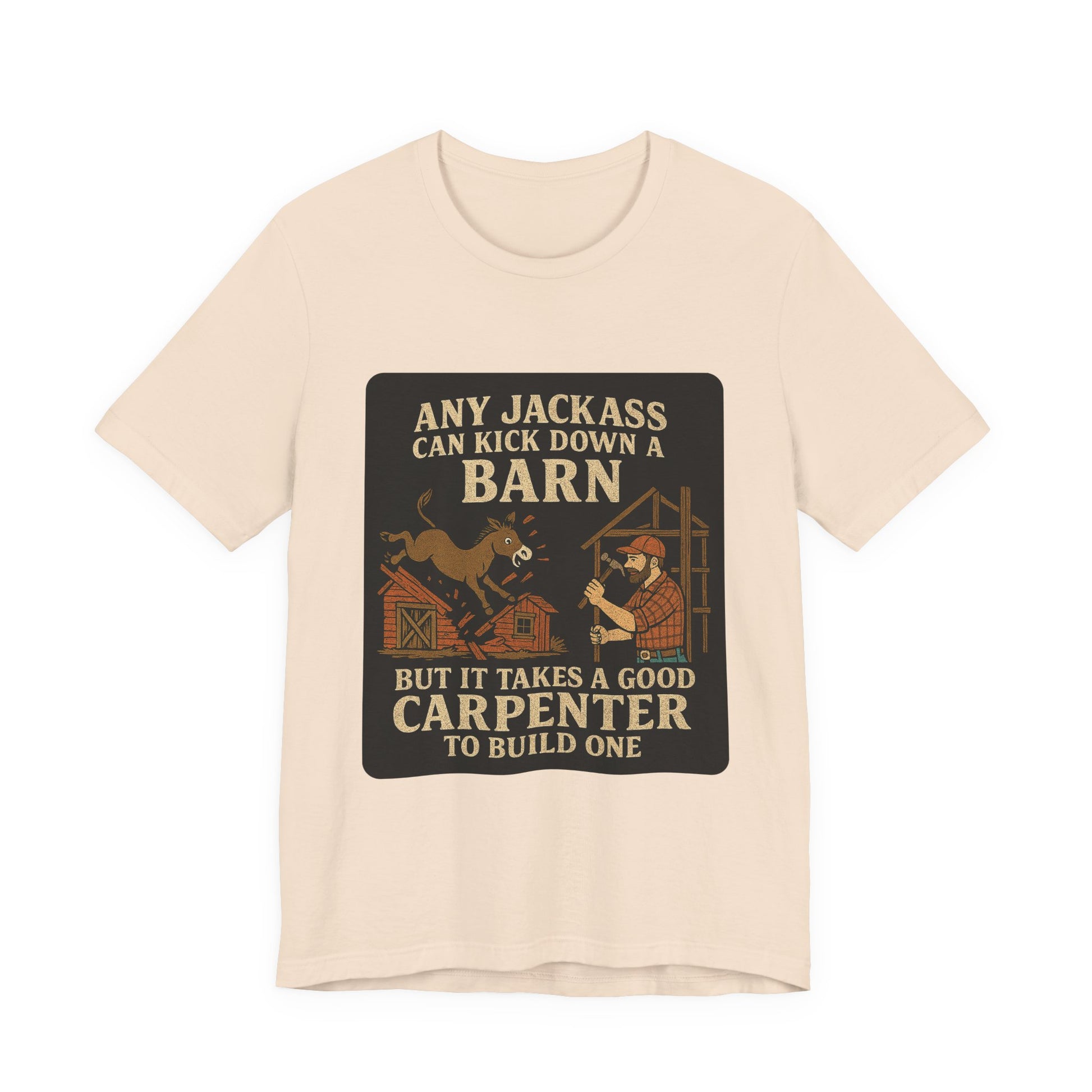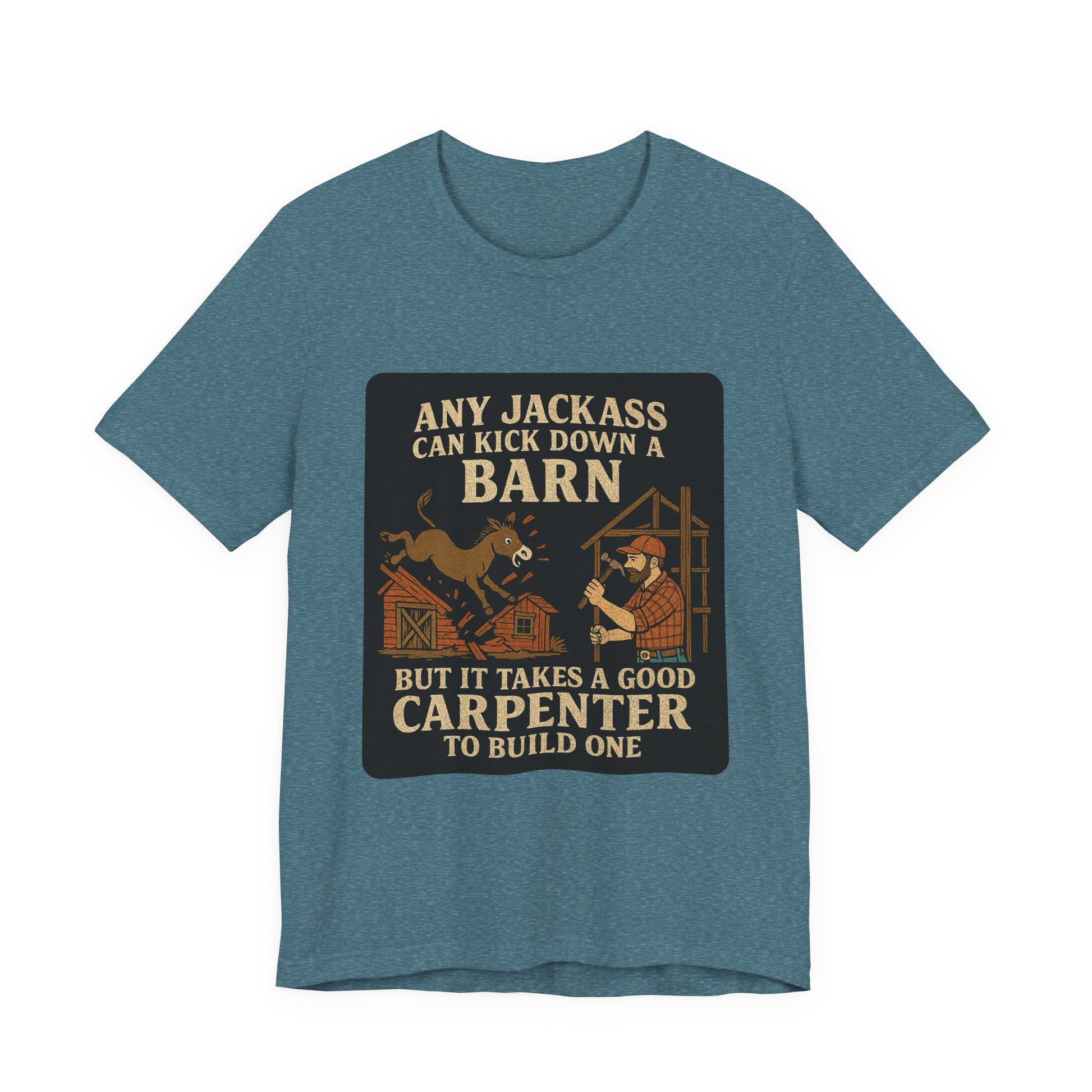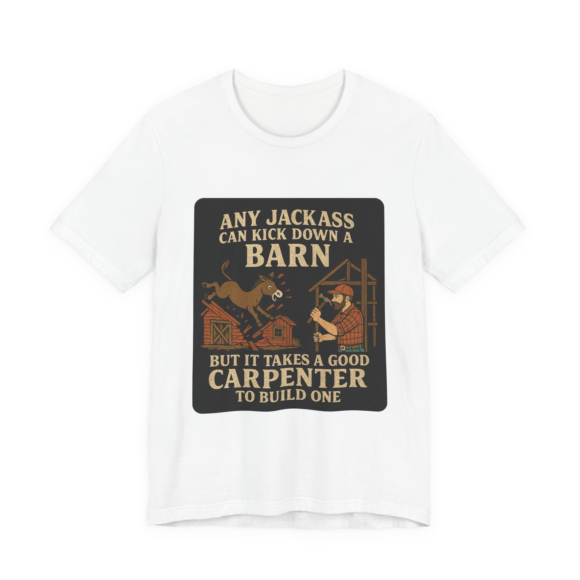 Carpenter Humor Tee - Any Jackass Can Kick Down a Barn, Funny Gift for Builders, Unisex T-Shirt, Great for Birthdays, Housewarming, [...]